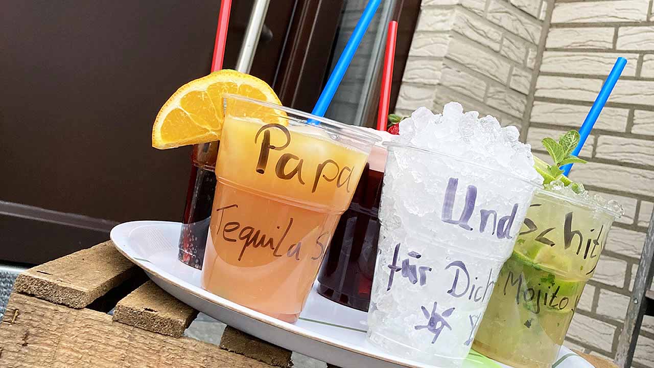 3 Bei einem hohem Bestellaufkommen mixen wir evtl. frisch vorab und bringen die Cocktails direkt zu Euch.
